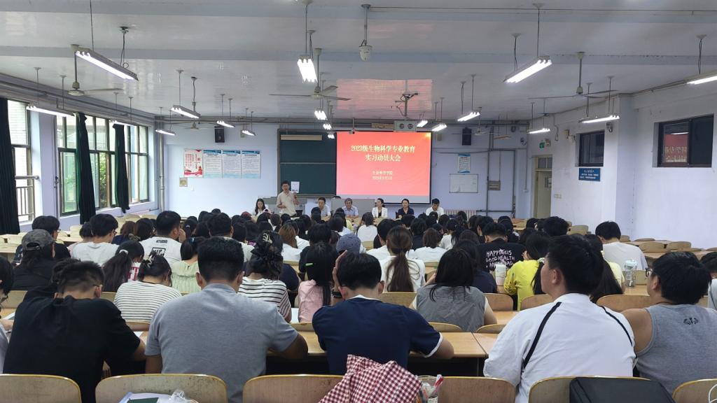 9月5日下午,太阳成集团tyc9728于求实楼0112教室召开2023级生物科学专业教育实习动员大会,旨在扎实推进支教实习工作,提升师范生教育实习成效。公司主要负责人、员工工作分管负责人、教学工作分管负责人、系主任、辅导员、班主任老师,以及2023级生物科学专业全体员工参加了会议。