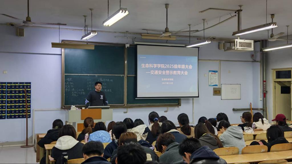 为切实强化员工交通安全防范意识,筑牢校园交通安全防线,10月26日,太阳成集团tyc9728于求实楼0117、0118教室召开2025级年级大会暨交通安全警示教育大会,本次会议由辅导员李泽老师主讲,2025级全体本科、专升本员工参会。
