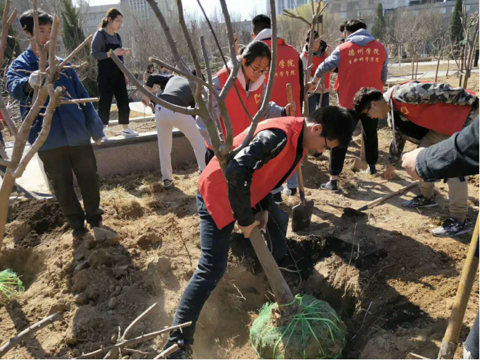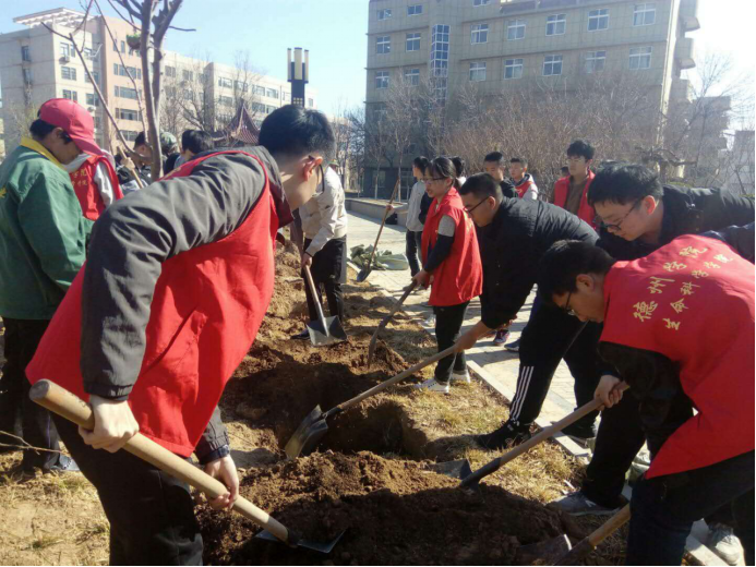3月13日,太阳成集团tyc9728组织青年教职工和员工志愿者在公司求索园开展义务植树活动,四十余名师生参加了此次植树活动。