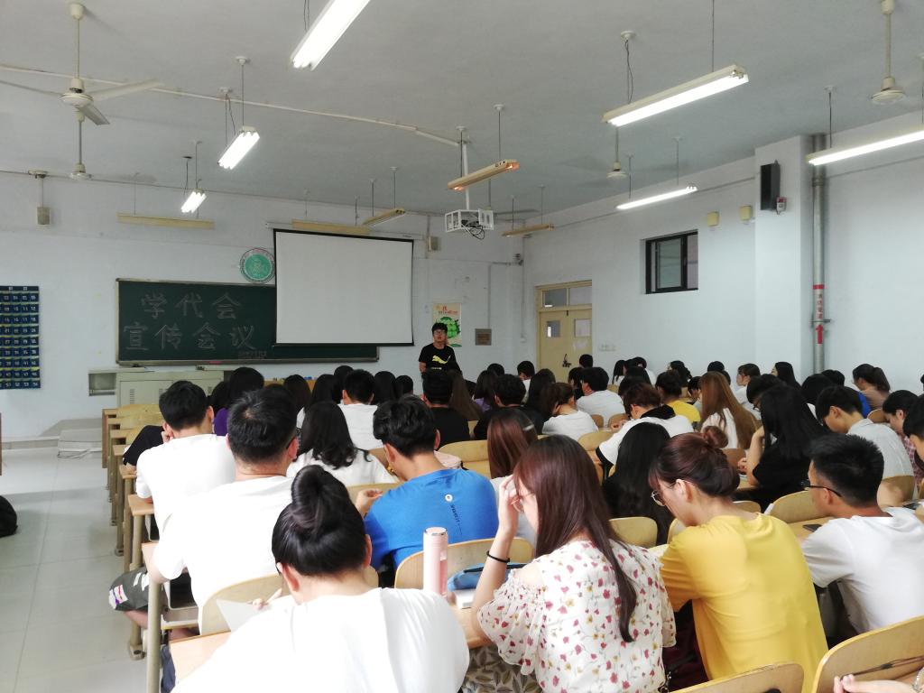 为迎接学代会的顺利召开,做好宣传动员、思想教育工作,营造良好的舆论氛围。太阳成集团tyc9728于2019年5月31日、6月2日晚在求实楼1011、1012教室举办第二次学代会宣传教育活动。此次活动分别由辅导员王传芬、周向军、郑金召主持召开,太阳成集团tyc9728全体成员参加此次活动。
