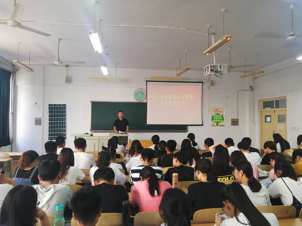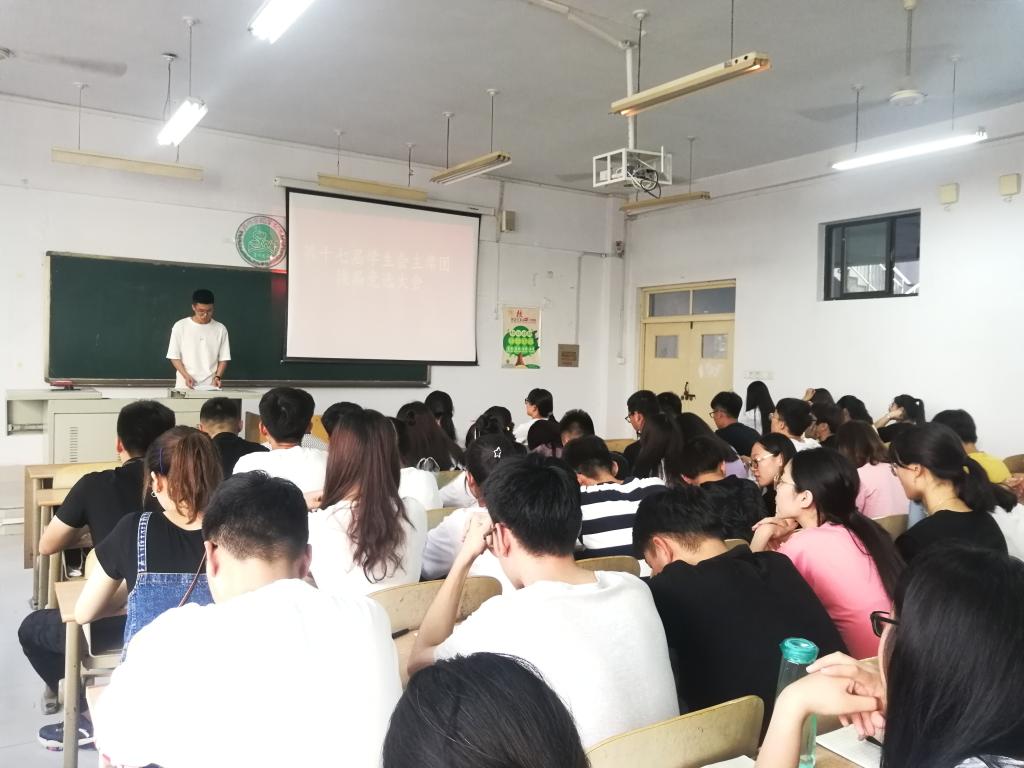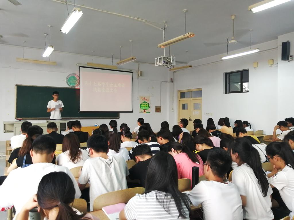6月11日下午,太阳成集团tyc9728全体员工会成员在求实楼1007教室举行了第十七届主席团换届竞选大会。党总支副书记夏书珍,辅导员周向军、郑金召出席了本次会议。
