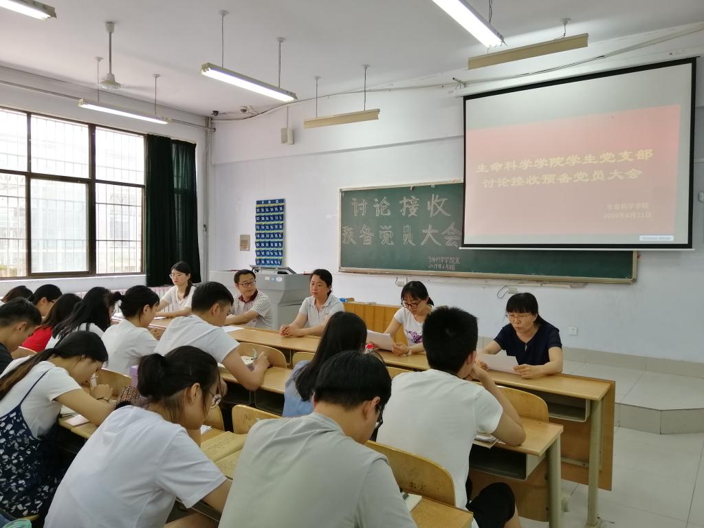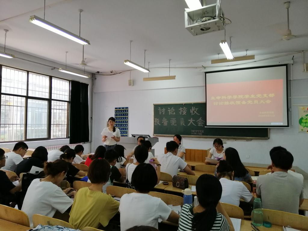 大会讨论表决是否接收发展对象王乐兵、张欣、周明春、王雨璐、苏嘉庆、金冰6名同学为中共预备党员。会议严格按照党组织接收预备党员程序进行,第一项,发展对象宣读《入党志愿书》,向大会汇报自己对党的认识、入党动机、本人履历、家庭主要成员和主要社会关系情况、现实表现,以及需要向党组织说明的其他问题;第二项,入党介绍人介绍对发展对象的培养考察情况和本人对吸收其加入党组织的意见;第三项,组织委员周向军代表党支部向大会介绍发展对象的培养、考察、公示和对其家庭主要成员和主要社会关系的政审情况;第四项,与会党员酝酿讨论,充分发表意见;第五项,投票表决。6名发展对象逐个依次进行讨论表决,得赞成票超过应到会有表决权正式党员的半数,据相关规定,大会同意接收王乐兵、张欣、周明春、王雨璐、苏嘉庆、金冰6名同志为中共预备党员。王乐兵等6名同志谈了自己的想法,明确了努力方向,表示将以此为契机,进一步加强学习,努力工作,争当一名合格的共产党员。