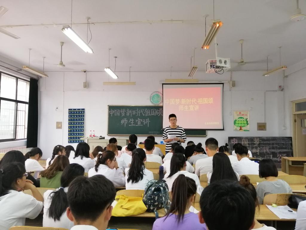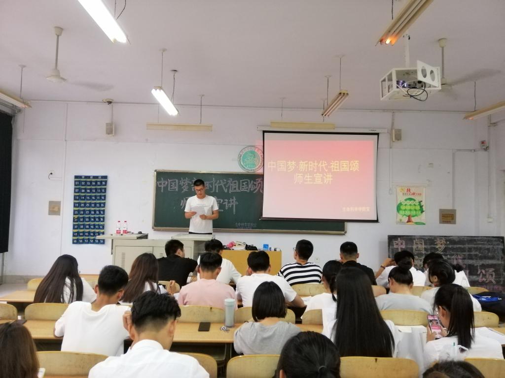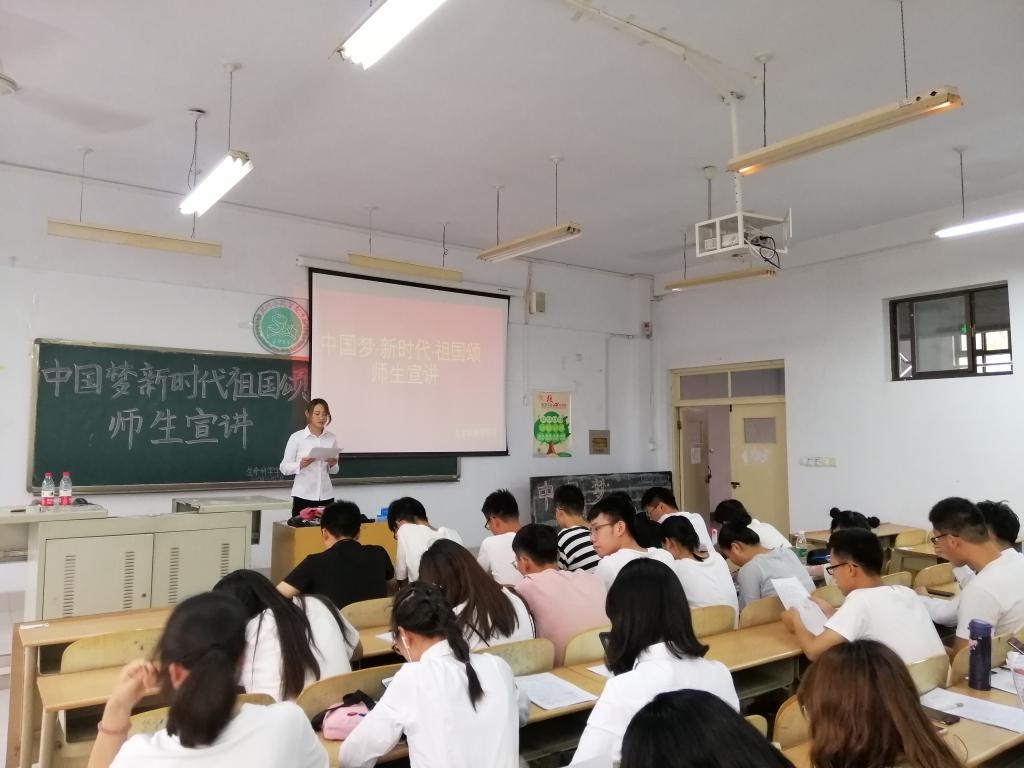 为持续推动习近平新时代中国特色社会主义思想和党的十九大精神,着力营造庆祝新中国成立70周年浓厚氛围。太阳成集团tyc9728于2019年6月15日下午在求实楼1007教室组织开展以“中国梦·新时代·祖国颂”为主题的师生宣讲活动。