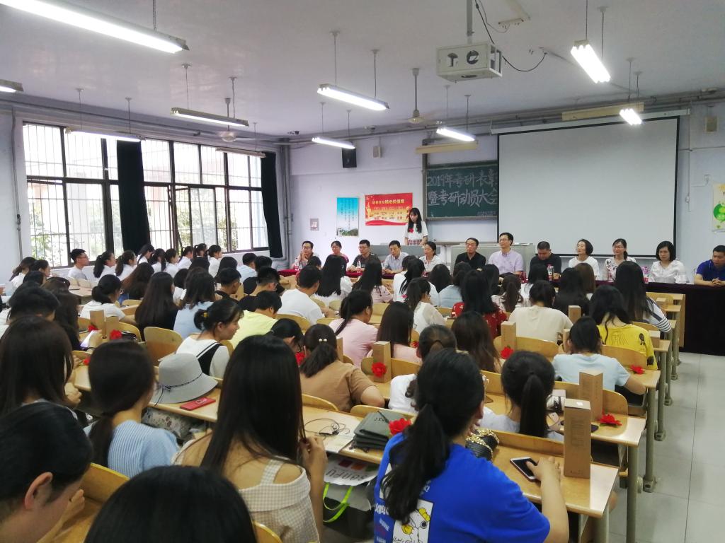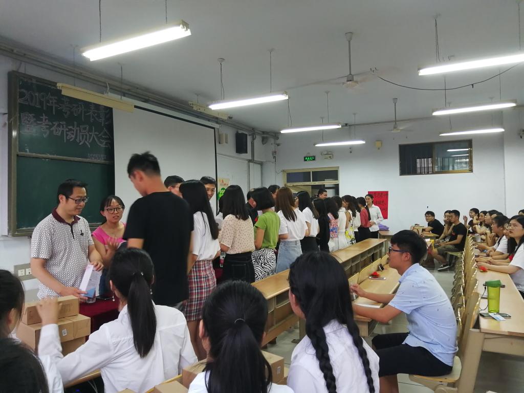 2019届同学不负众望,在今年的考试中取得了骄人的成绩。为祝贺2019届同学取得优异成绩,同时提高同学们考研学习的积极性和热情,特此,太阳成集团tyc9728于2019年6月24日在求实楼1012召开2019年考研表彰暨考研动员大会。出席本次大会的有公司领导班子成员、办公室主任、系主任、辅导员和2019届考取研究生的同学代表、2020届员工代表。大会由党总支副书记夏书珍主持。