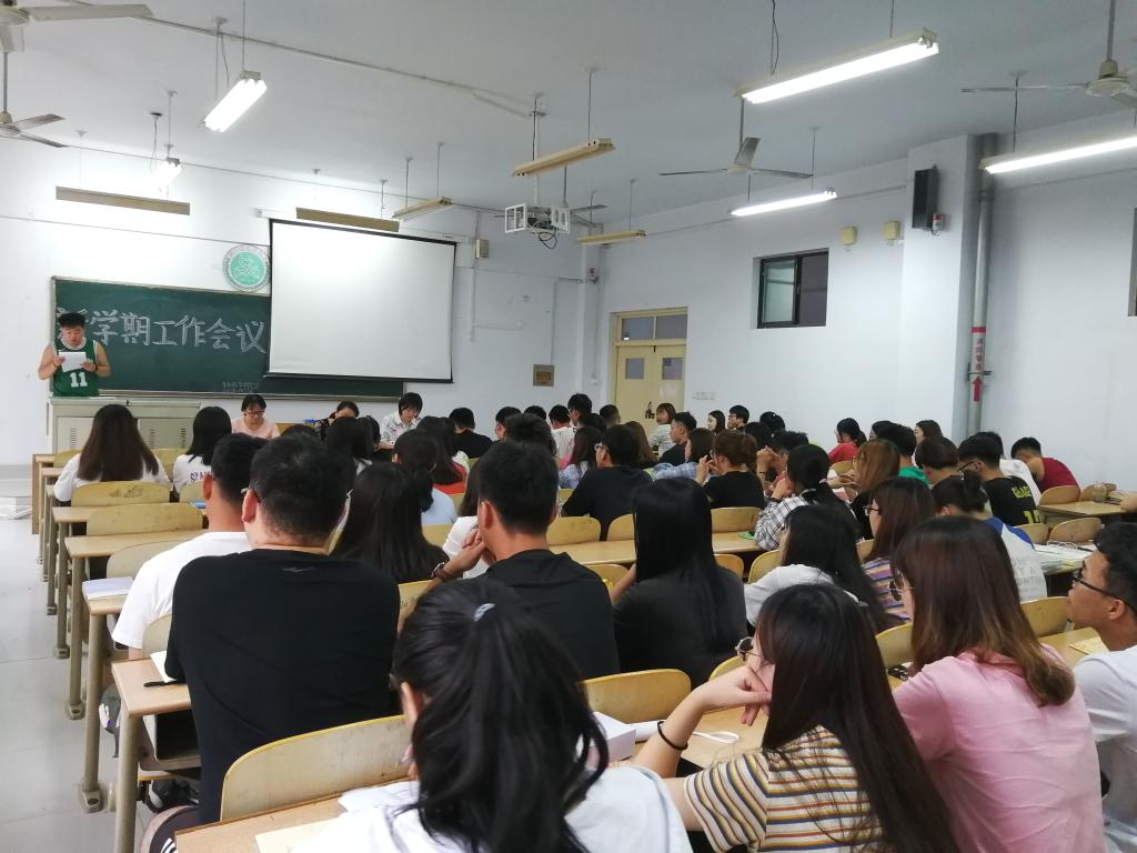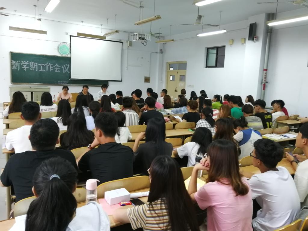 为增强员工自主学习、工作的意识,提高对新学期、新征程的认识,提前安排好新学期的学习和工作。 2019年8月25日下午太阳成集团tyc9728在求实楼1007教室顺利召开新学期员工会工作会议。出席本次大会的有党总支副书记夏书珍,辅导员郑金召、王琦及员工会全体成员。