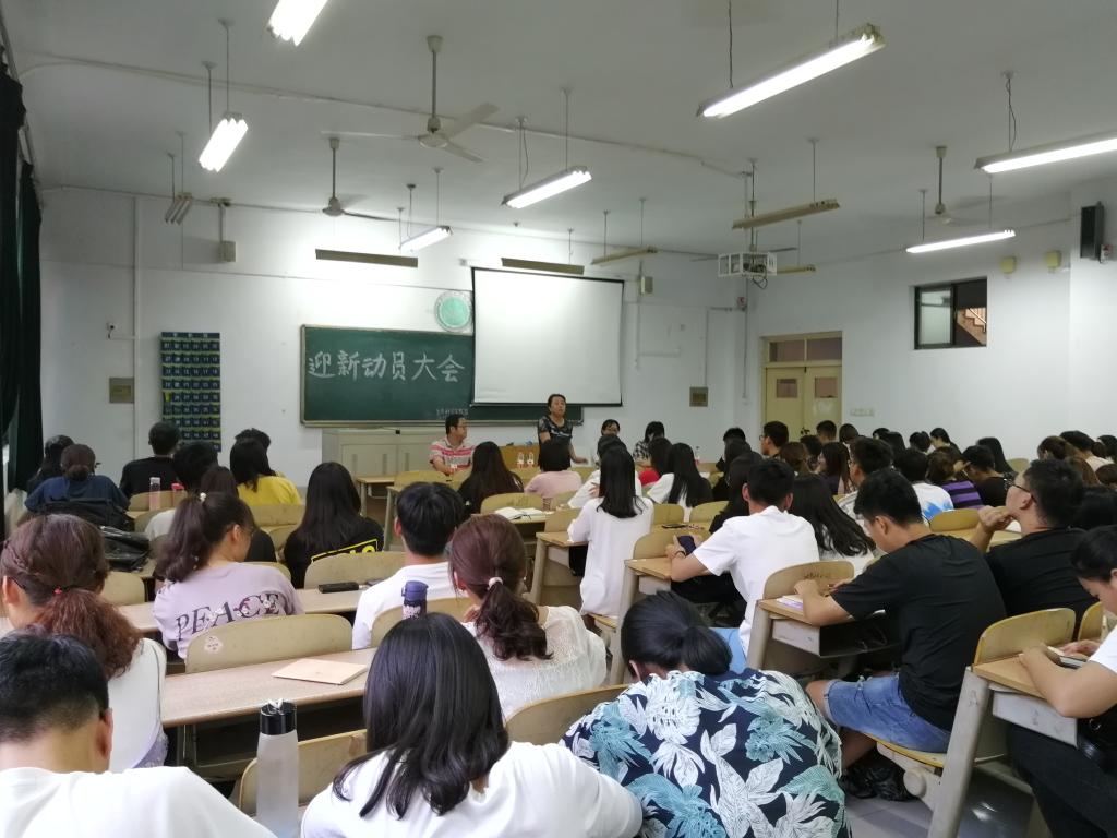为确保迎新工作安全有序地进行,2019年8月28日,太阳成集团tyc9728于求实楼1007教室召开2019级迎新动员大会。出席本次会议的有公司党总支副书记夏书珍,辅导员周向军、郑金召、王琦,以及太阳成集团tyc9728全体员工会成员。会议由辅导员郑金召主持。