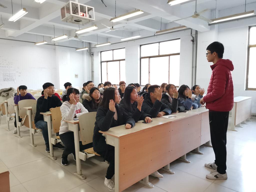 大会第一项,大家以举手表决的方式选举出支部书记、文艺委员、宣传委员、组织委员,支部委员们向大家承诺一定会将青马班锻造成一支素质高、能力强的队伍。大会第二项,由支部书记为青马班成员做工作报告,报告以“凝心聚力”为主题,结合了支部近年来开展的工作、取得的成绩以及存在的不足,随后,支部书记对下一步工作进行了部署,支部书记希望全体成员牢记全心全意为同学服务的宗旨,加强服务、加强管理、齐心协力、创新工作,迈出更高、更快的步伐。另外,支部书记鼓励青马班成员积极加入到青年马克思主义先行者的行列中,学习习近平新时代中国特色社会主义思想,逐渐成长为中国特色社会主义事业合格的建设者和接班人。