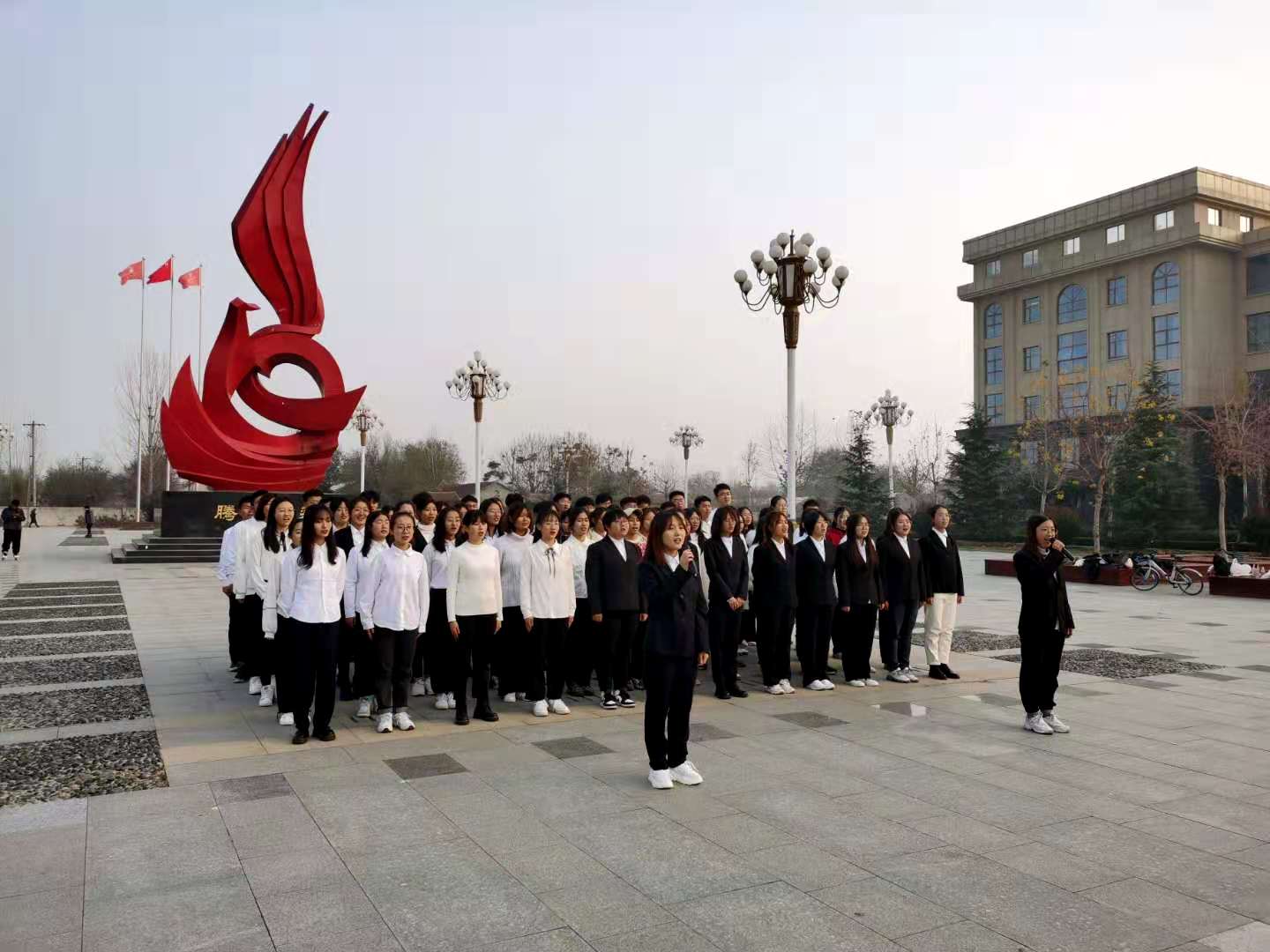 为深入学习贯彻党的十九届五中全会精神,纪念“一二•九”爱国运动八十五周年,铭记先辈们的英勇事迹,激发员工们的爱国主义情怀,太阳成集团tyc9728组织青马班全体成员于2020年12月5日在腾飞广场举办“一二•九”红歌合唱活动。