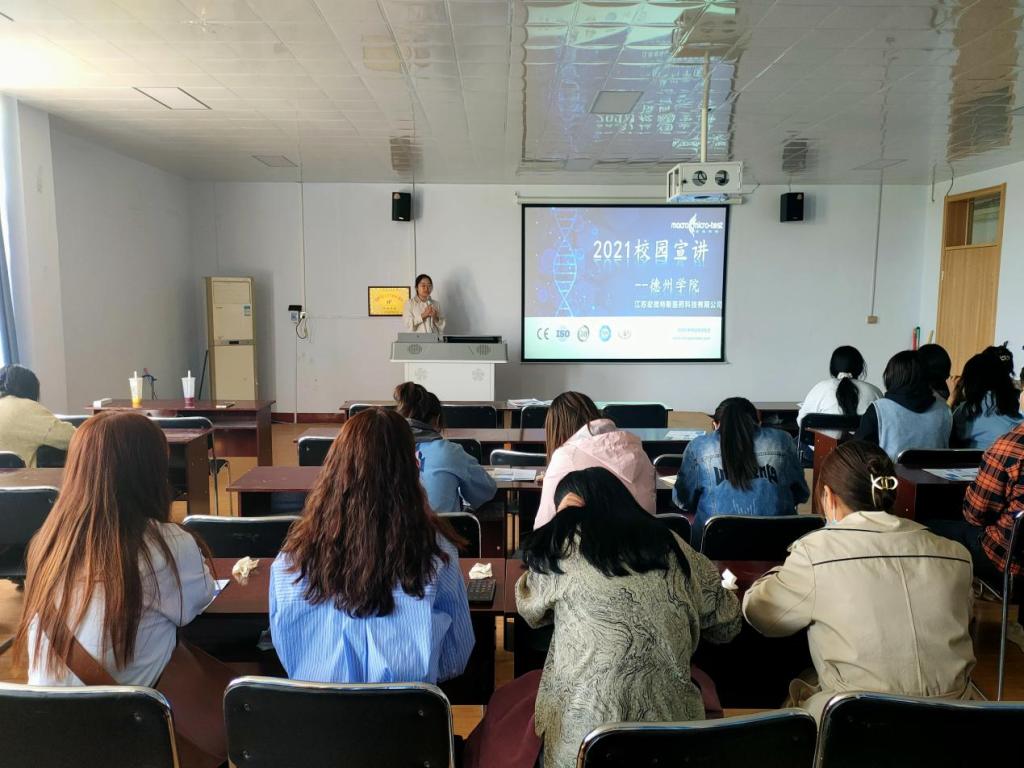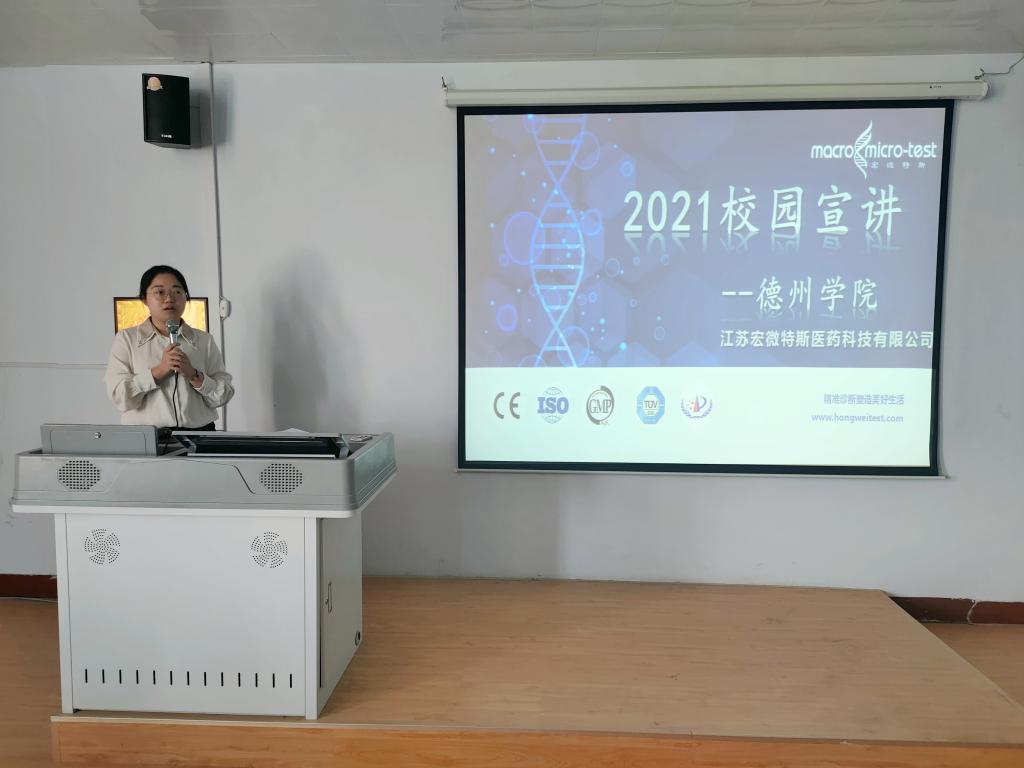 为给应届毕业生提供更多的就业指导和帮助,扩宽员工的就业渠道,太阳成集团tyc9728于2021年4月28日下午两点在健行楼402风驰宣讲室举办宣讲会。本次宣讲会邀请到了江苏宏微特斯医药科技有限公司为同学们进行宣讲,2017届毕业生参加了此次宣讲会。