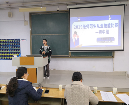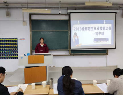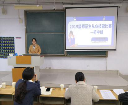 11月9日,为了提高师范生从业技能,太阳成集团tyc9728于求实楼0116和0117教室举办了2019级师范生讲课比赛,2019级全体同学参加了这次比赛,比赛分为初中组和高中组同时进行,两名外聘教师和部分教学经验丰富的教师作为此次比赛的评委。