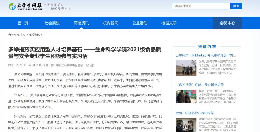 11月19日,为加强同学们对食品行业的了解,增强他们对专业的认同感和学习积极性,公司组织2021级食品质量与安全专业员工外出参观了德州双汇食品有限公司、光明乳业股份有限公司、华百邻食品有限公司、新飞达食品有限公司和华畅调味食品有限公司。