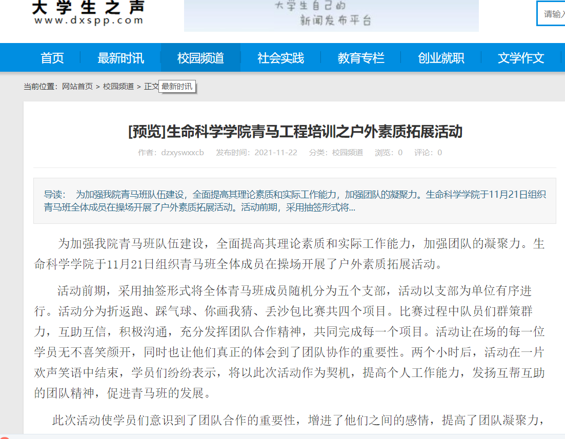 此次活动使学员们意识到了团队合作的重要性,增进了他们之间的感情,提高了团队凝聚力,有利于青马班各项工作的顺利进行