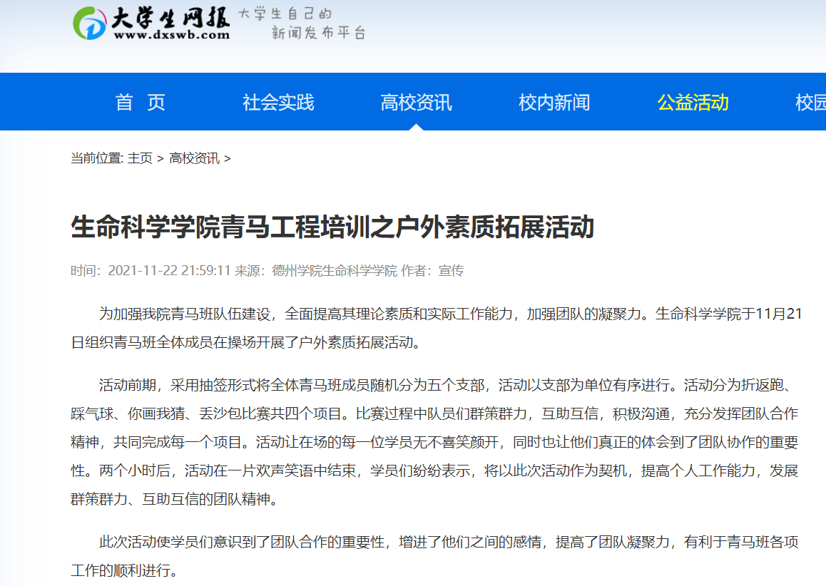 为加强公司青马班队伍建设,全面提高其理论素质和实际工作能力,加强团队的凝聚力。太阳成集团tyc9728于11月21日组织青马班全体成员在操场开展了户外素质拓展活动。