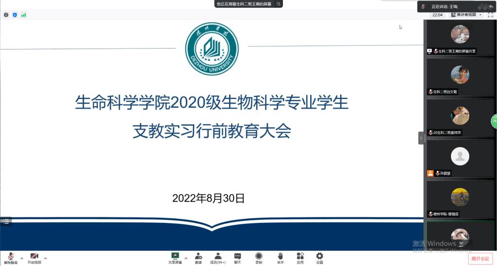8月30日,为保障实习支教工作顺利进行,公司通过腾讯会议举行生物科学专业员工支教实习行前线上教育大会。公司党委书记、经理、副经理、经理助理及系主任、辅导员以及2020级师范类全体员工参加。