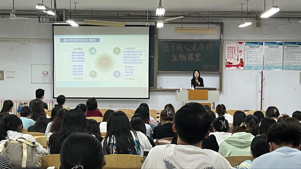 颜春玲教授作了题为《基于核心素养的生物课堂教学》的研究报告。报告中,颜教授利用典型例题,总结了当评价效果与预期不符时,教师应调查员工本身存在的知识漏洞和能力缺陷,及时进行弥补。同时,颜教授告诉大家,教师在课堂上要以核心素养为宗旨,引导员工多动脑、多练习,促进学科核心素养在教学中的落实。