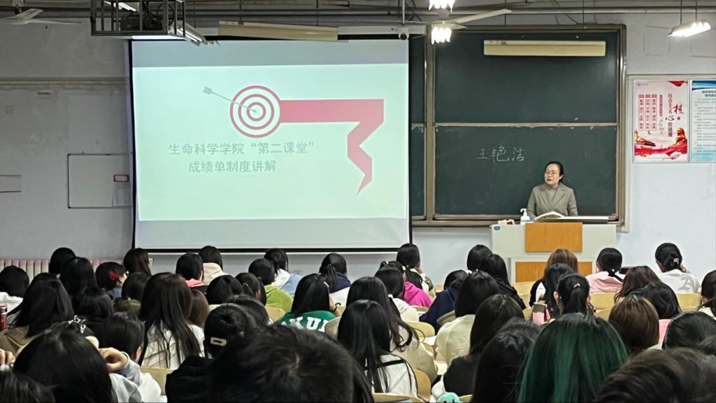 会议伊始,团委书记王艳洁围绕制度的意义及其主要内容进行讲解,并强调了“第二课堂成绩单”毕业学分的基本要求,希望2022级新生围绕“第二课堂成绩单”制度课程项目体系积极参与思想教育、科技竞赛、学术讲座、志愿服务、文体活动、社会实践等各类活动,不断提升自身综合素质,充实老员工活。