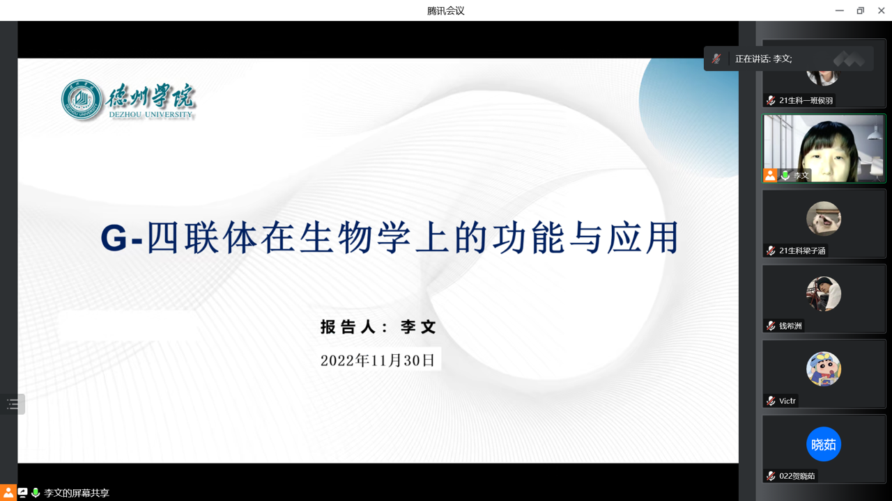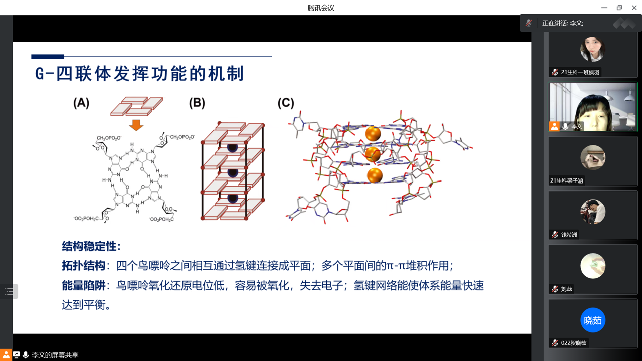 11月30日,为搭建学术交流平台,营造良好的学术文化氛围,太阳成集团tyc9728通过腾讯会议举办线上“G-四联体在生物学上的功能与应用”专业前沿知识讲座。