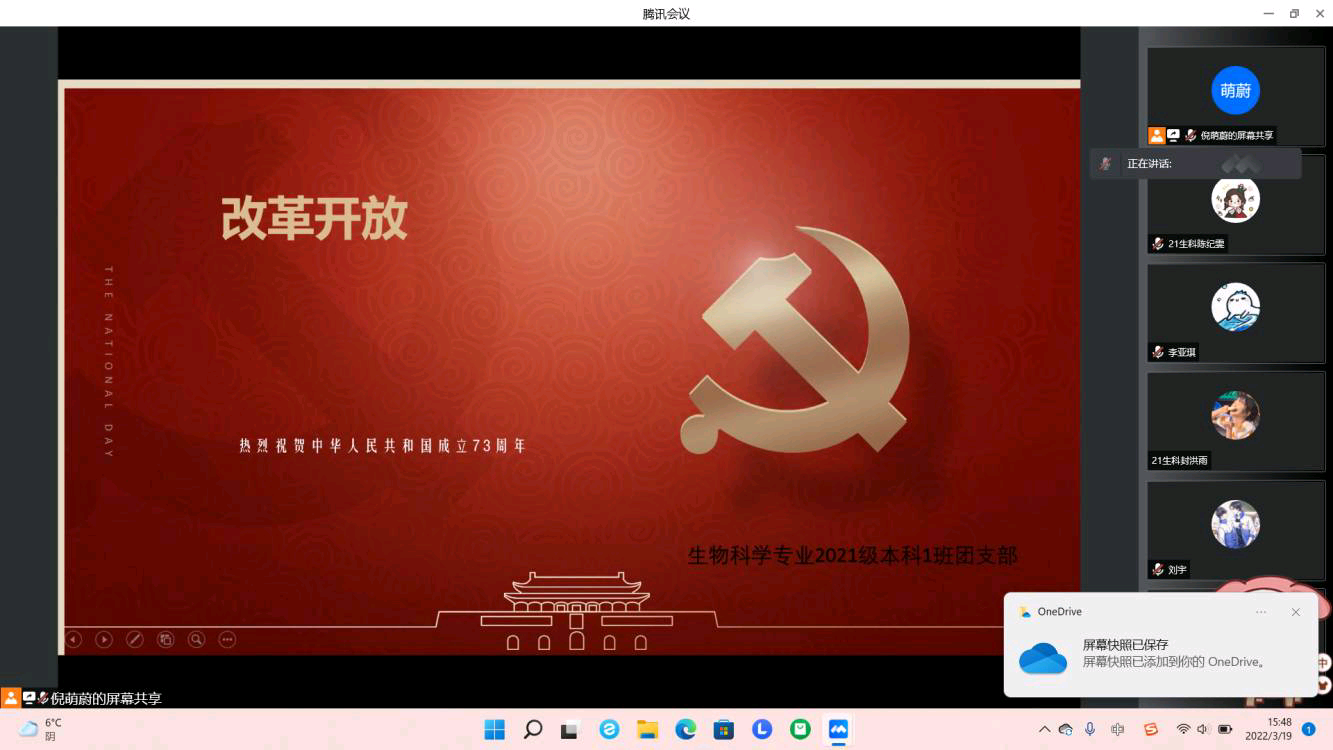 为了加强同学们对党史的学习,深入了解中国共产党的发展历程,2022年3月10日,太阳成集团tyc9728生物科学专业2021级本科1班团支部组织同学们线上开展改革开放党史学习会。