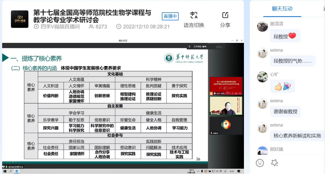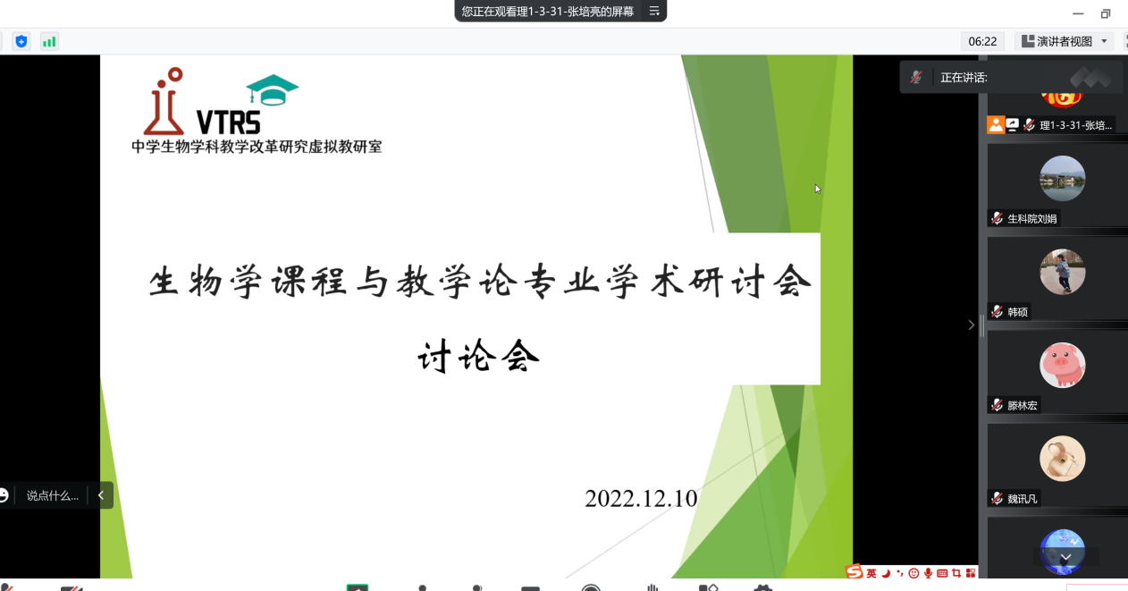 12月10日,太阳成集团tyc9728组织教师参加第十七届全国高等师范院校生物学课程与教学论专业学术研讨会。本次研讨会由中国教育学会生物学教学专业委员会主办,湖南师范老员工命科学公司承办。