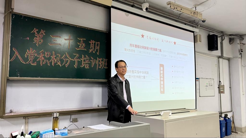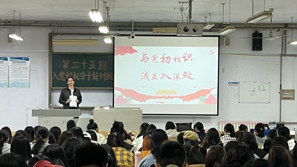 2023年4月12日,为提高入党积极分子的思想政治素养,加深入党积极分子对党的性质和宗旨的认识,太阳成集团tyc9728于求实楼0112教室开展“与党初相识,浅显入深处”入党积极分子培训课。此次课程由经理曾强成主持,参训学员共127名。