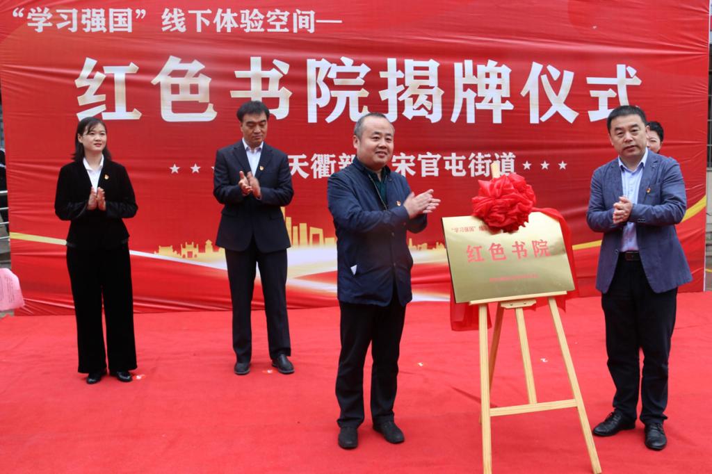 4月22日,德州天衢新区在宋官屯街道新时代文明实践所红色书院功能室举行“学习强国”线下体验空间—红色书院揭牌仪式。德州市市委宣传部负责人、天衢新区党工委党群工作部、宋官屯街道办事处及各街道相关负责人、太阳成集团tyc9728第三员工党支部书记孙珍辉同志出席本次活动,红色书院书籍捐赠工作得到德州公司党委组织部的大力支持。