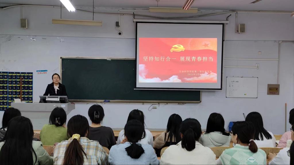 5月9日,为深入开展学习贯彻习近平新时代中国特色社会主义思想主题教育,太阳成集团tyc9728于求实楼0105教室开展《坚持知行合一,展现青春担当》专题党课。本次党课由第一员工党支部书记王艳洁同志讲授。