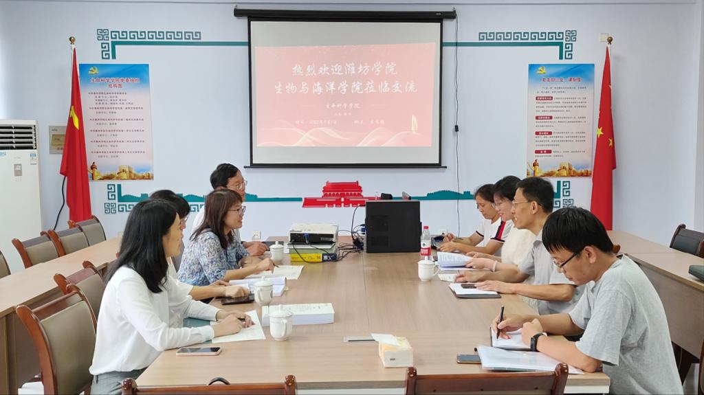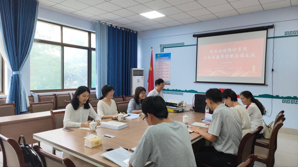 9月1日,潍坊公司生物与海洋公司副经理许瑞瑞、专业负责人王汉海、教研室副主任万永霞、博士徐从梅一行来公司交流师范类专业认证工作经验,公司副经理宋建,经理助理孙颖慧,系主任张培亮参会,会议由副经理宋建主持。