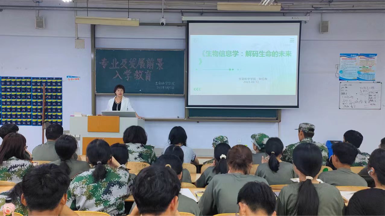 9月13日晚,公司生物信息学专业系主任张红梅于求实楼0116教室,为2023级新生开展入学教育。