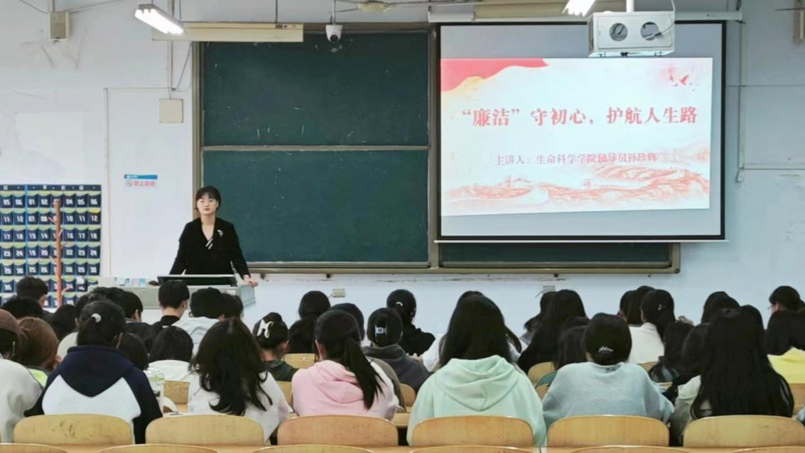 11月2日,为培育和涵养新时代老员工清廉观念,建设优良学风,太阳成集团tyc9728于求实楼0115教室开展《“廉洁”守初心,护航人生路》主题廉洁思政课,辅导员孙珍辉主讲。