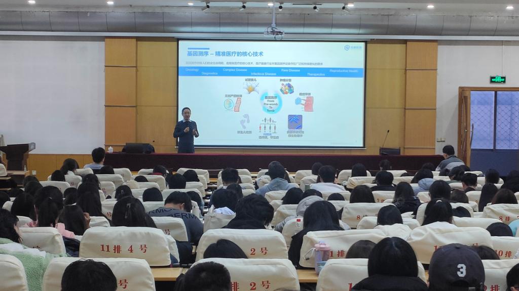 讲座上,白博士从基因测序的原理出发,深入浅出地讲解了高通量基因测序技术在生命科学领域的应用与发展,他通过专业的讲解和丰富的案例,展示了这项技术的优势和未来发展趋势。在座的教师和同学对于白博士的讲解产生了浓厚的兴趣,并深刻认识到科学研究对于社会和人类的发展具有至关重要的作用,这激发了进一步探索专业知识的热情,并纷纷表示将致力于灵活运用专业技巧,不断提升学习和科研能力。