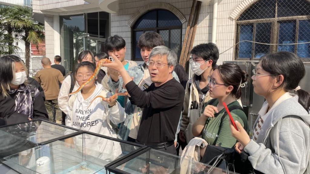 在宏村,公司老师详细讲解了采集标本的方法和注意事项,并准备了必要的采集工具和安全装备。随后,同学们以严谨的态度,认真观察记录下植物的名称、特征和科属等知识,小心采摘植物样本,捕捉昆虫和小型动物,老师对操作进行细致指导和点评,确保采集过程的科学与安全。下午,师生一行前往屯溪蛇园参观学习。在讲解员的带领下,共同参观了蛇园的繁育区、展示区和科研区,通过讲解,大家了解到蛇类对于维持生态平衡具有重要意义。此外,在参观过程中,员工们还亲手触摸了一些温顺的蛇类,从而更加直观地了解蛇类的特点与习性。