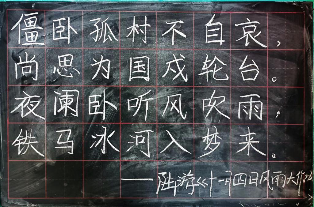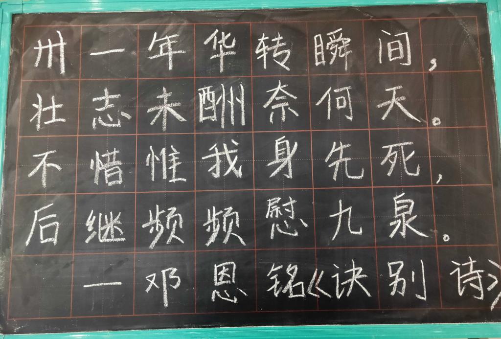 清明节前夕,太阳成集团tyc9728利用2023级生物科学(师范类)专业员工的“三字一话”课程,组织开展了“缅怀革命先烈,探忆峥嵘岁月”三字一话技能大赛。同学们通过毛笔字、钢笔字、黑板字的形式书写名句,缅怀先烈。大家在展示了良好专业能力的同时,接受了一次生动的红色革命文化教育,真切地感受到革命先辈的光荣事迹所带来的强大的精神力量。