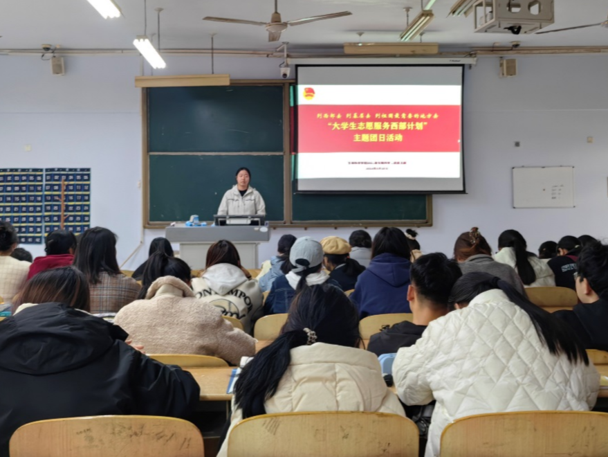 会上,团员们观看西部计划宣传片,了解了西部计划实行以来发生的一系列真实感人的故事。随后,各团支部书记们详细介绍了西部计划(山东计划)的服务项目、报名时间、报名资格、报名程序、招募人数、招募流程和相关政策等情况,号召团员青年们到“到西部去、到基层去、到祖国最需要的地方去”。