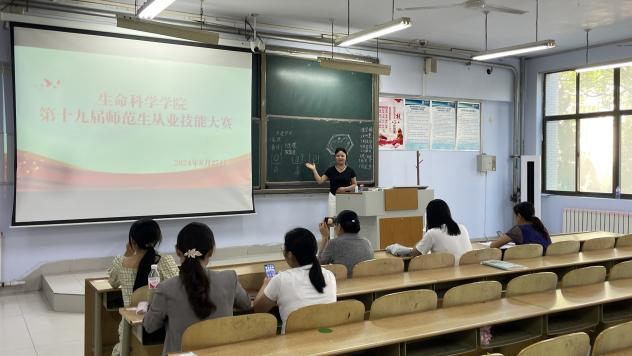 8月27日,为进一步强化师范生从教基本技能教学与训练,太阳成集团tyc9728于求实楼0111教室举办师范生从业技能大赛院赛。公司工作在一线、教学经验丰富、有独到见解的张秀玲、滕林宏、魏讯凡老师作为此次比赛的评委,2022级生物科学专业全体师范生参加了此次比赛。