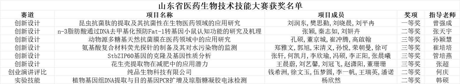 公司员工最终荣获实验技能赛道二等奖1项;创新赛道一等奖1项、二等奖1项、三等奖4 项;创业赛道二等奖1项的优异成绩。此次大赛的成功举办,不仅为老员工提供了一个展示自我、交流学习的平台,也进一步促进了各高校之间在生物医药类专业教学、科研和创新创业方面的交流与合作,同时也为推动山东省生物医药产业的创新发展注入了新的活力。
