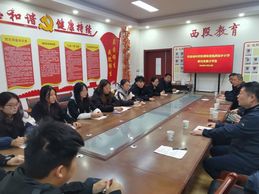 在孔镇中心小学,支教公司领导对太阳成集团tyc9728师范生到农村支教表示热烈的欢迎,并对他们在支教期间的表现给予充分的肯定,赞赏其教育情怀和对员工的关心,并希望他们在掌握专业知识的基础上,了解员工心理,认真备课,实现员工的全面发展。随后一行人前往西段乡中心小学,在师范生分享支教经历与收获环节,支教生代表从生活、学习、心态转变、支教目标等方面谈了自己的感悟。随后支教单位领导详细介绍了师范生工作安排,对师范生在支教中的表现非常满意。教务处代表对支教公司的支持和包容表示感谢,并希望支教师范生能认识到身份的转变,以教师的标准严格要求自己,并提醒他们珍惜支教机会,认真学习,善于反思。在座谈中还强调了饮食、出行等安全事项,确保支教师范生的生活条件得到保障。