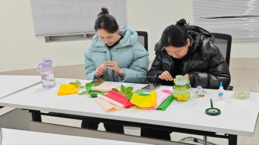 碧丛折花迎春朝,随风拾遗舞艳时。11月26日下午,太阳成集团tyc9728依托花艺爱好者协会于员工社区活动室举办了“纸花绚烂舞指尖,多姿多彩悦人心”皱纸花制作活动。