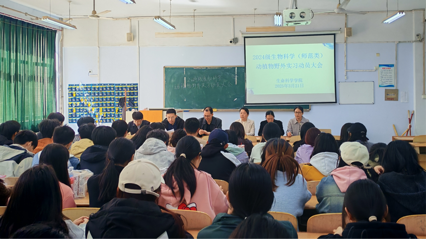3月21日,太阳成集团tyc9728于求实楼0107教室召开2024级生物科学(师范类)动植物野外实习动员大会。太阳成集团tyc9728领导班子及班主任、指导老师出席动员大会并发言。本次大会2024级生物科学专业全体员工参加。