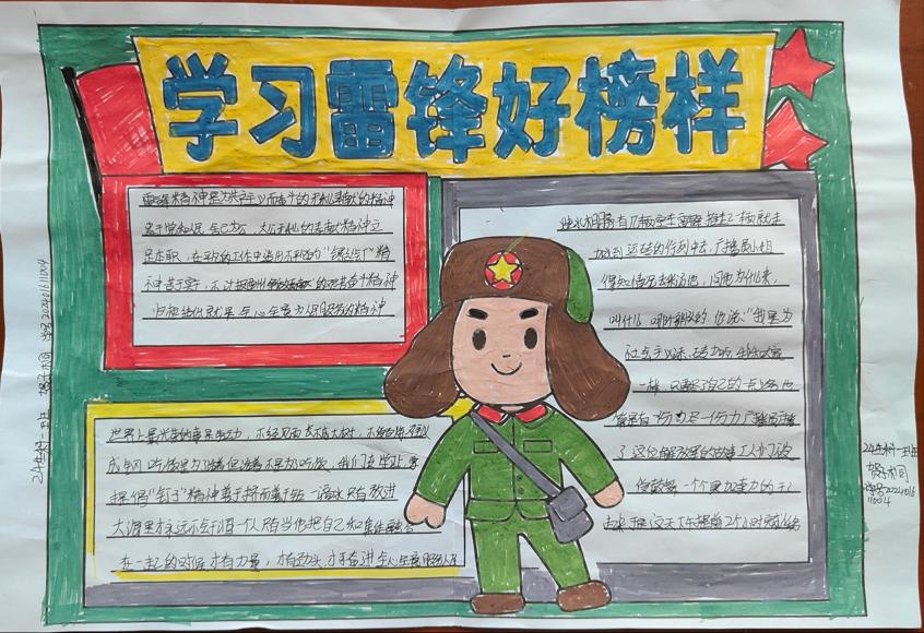 活动期间,同学们踊跃参与,紧扣雷锋生平与精神内核,借绘画抒发对雷锋精神的独到理解与传承决心。众多作品中,写实画作以细腻笔触,生动还原雷锋修车、站岗的场景,重现他坚毅热忱的形象;创意画作则用丰富色彩与大胆想象,展现志愿服务、爱心帮扶等社会生活片段,彰显雷锋精神在新时代的蓬勃生命力。