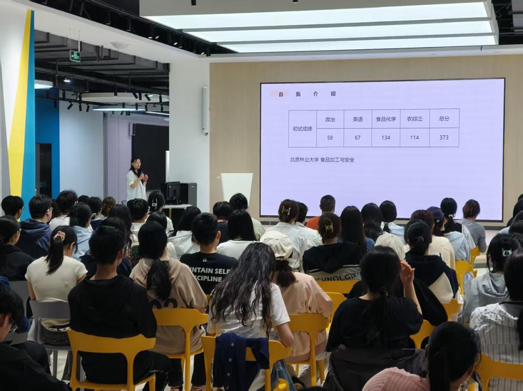 4月25日,为营造积极向上的学习氛围,借助朋辈的正向带动,让员工们对考研有更清晰的认识和规划,公司于太阳成集团tyc9728东校区创业就业赋能中心成功举办了一场考研经验分享会。公司特邀21级食品质量与安全专业三位成功上岸的优秀员工潘诺、王洪斌、张海玲为即将踏上考研征程的22级同学传经送宝。