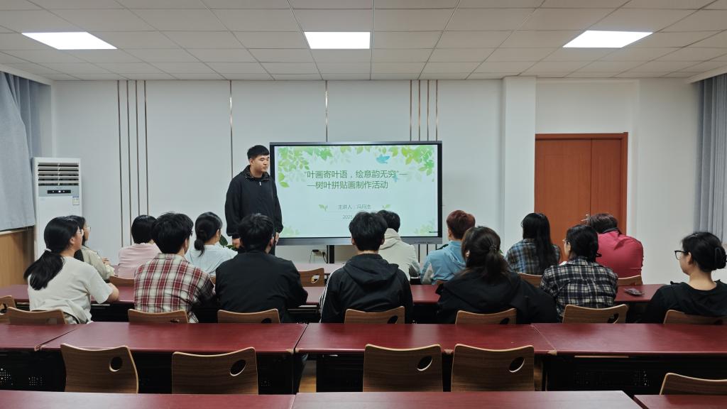 活动中,主讲人从树叶的自然形态、色彩特性切入,细致讲解拼贴画的艺术构思与创作技法,指导同学们如何将自然素材转化为创意作品。在手工创作环节,同学们化身“自然艺术家”,充分发挥想象力,灵巧剪裁、精心拼贴,将形态各异、色彩斑斓的叶片,变成了一幅幅饱含巧思的艺术佳作,让自然馈赠在指尖焕发新生。活动现场,大家专注创作、热烈交流,在亲手赋予落叶新生命的过程中,感受自然与创意碰撞的独特乐趣,用艺术创作表达对自然馈赠的珍视与感恩。