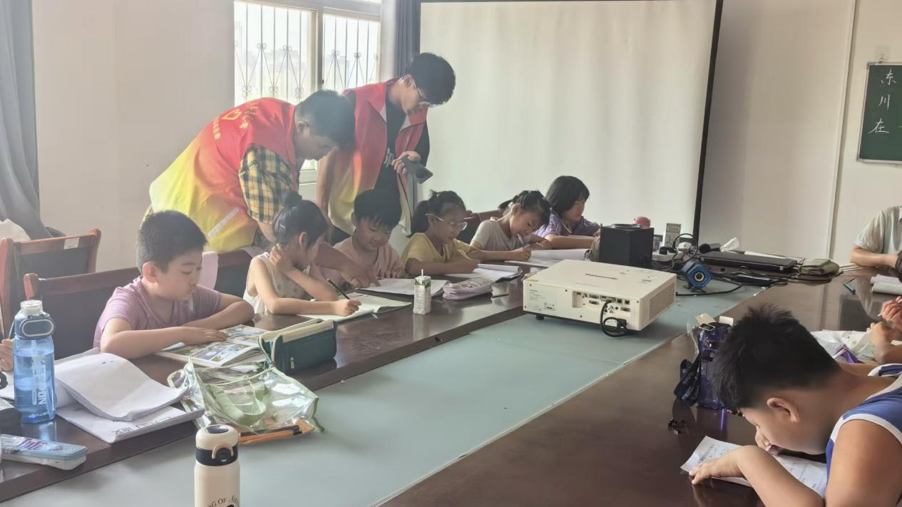 (志愿者为孩子们辅导作业)