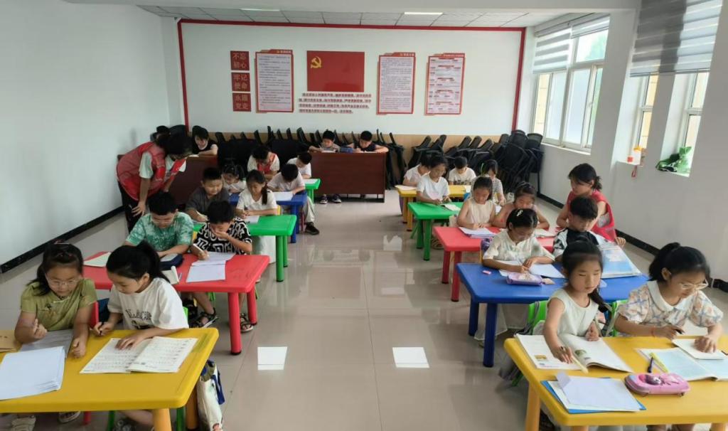 (志愿者们正在辅导小朋友)