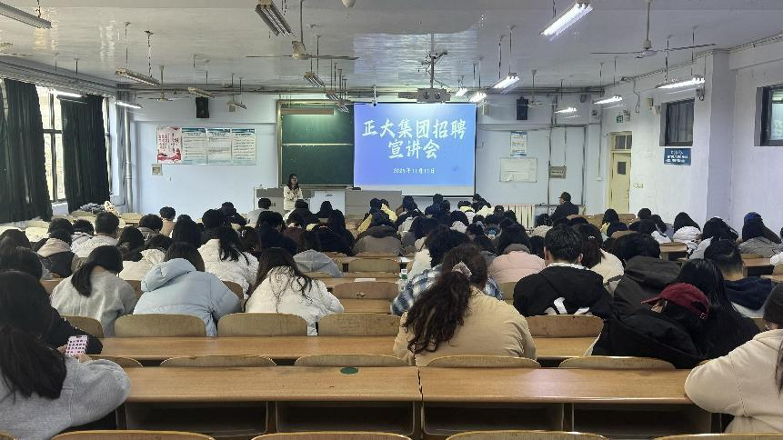 为助力公司学子明确职业方向、拓宽就业渠道,11月11日,正大集团招聘宣讲团受邀走进公司,在求实楼0112教室为公司相关专业员工带来一场主题鲜明的招聘宣讲会。