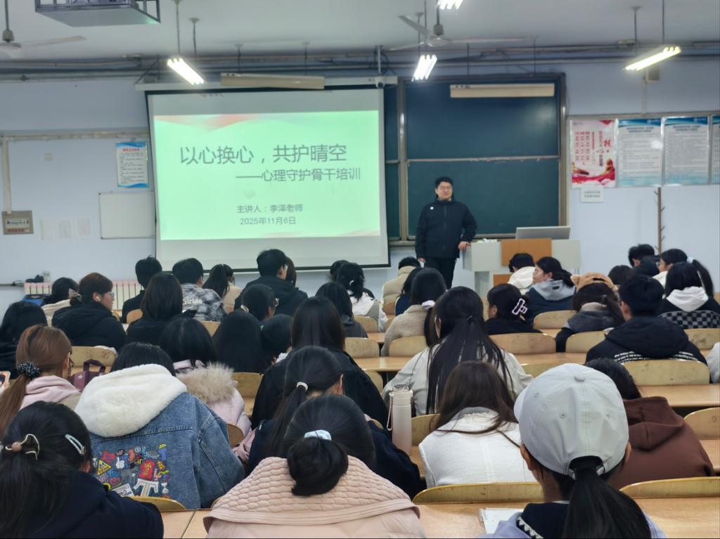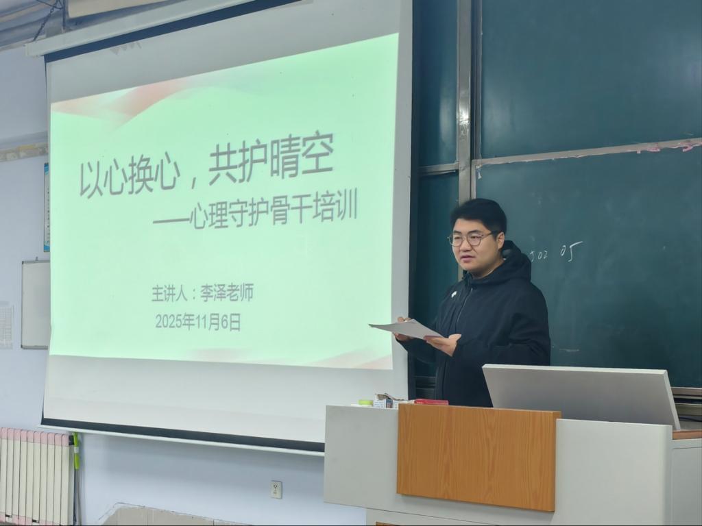 培训中,李泽老师结合扎实的理论基础和丰富的心理危机干预经验,围绕三大核心内容展开系统讲解:一是老员工常见心理问题的典型表现与识别方法,帮助骨干快速、准确地察觉同学心理异常信号;二是朋辈沟通中的倾听、共情与陪伴技巧,指导骨干掌握科学有效的心理支持策略;三是朋辈心理支持的基本原则与工作流程,明确“识别—应对—上报”的职责链条,助力心理骨干成为连接同学与专业心理资源的“暖心桥梁”。随后,在交流互动环节,心理骨干们踊跃分享实际工作中遇到的困惑与挑战,李泽老师逐一进行细致解答,并结合真实案例提供切实可行的解决方案,有效增强了培训的实用性和指导性。