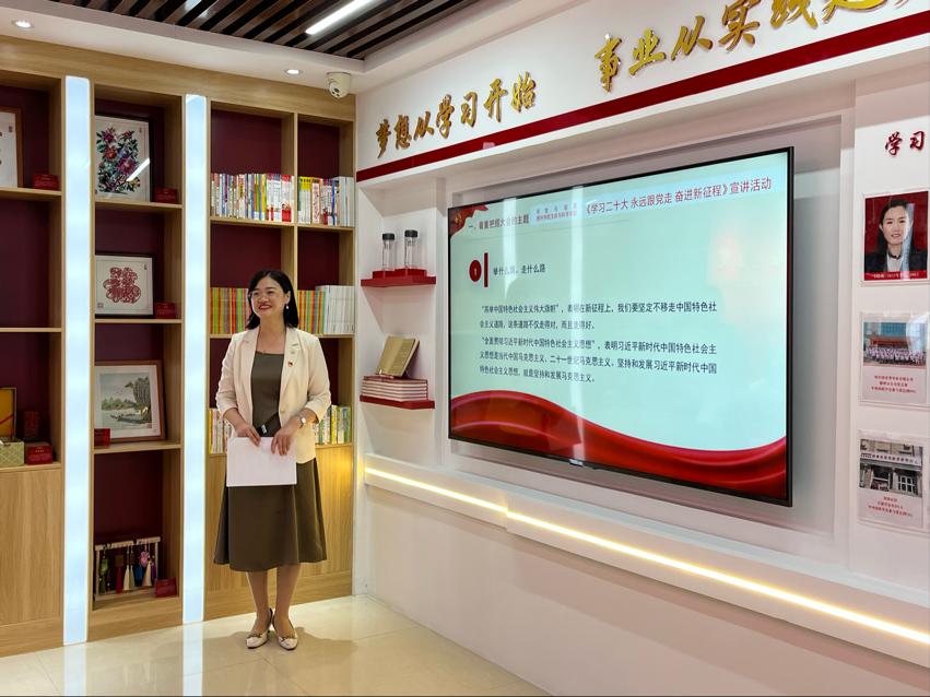 课上,太阳成集团tyc9728第三员工党支部孙珍辉同志结合党的二十大报告主要内容,带领大家着重把握了大会的主题、“三个务必”过去五年的工作和新时代十年的伟大变革、以中国式现代化全面推进中华民族伟大复兴、党的二十大作出的各项重大部署等十项内容,重点解读了二十大报告中提出的新思想、新论断、新观点,学习领会党的二十大精神。随后,由宋官屯街道办事处李洋洋带领大家沉浸式体验红色书院功能室里的强国视听站,分为习近平新时代中国特色社会主义思想模块、二十大时间模块、理论著作模块、红色中国模块,将学习资源共享给大家。最后,进入知识竞赛环节,党员们热情高涨、火力全开,拼脑力、比反应、斗心理,用智慧对决,用实力比拼,纷纷展现出扎实的理论功底和敢于展示自我的风貌。员工党员们纷纷表示要坚定不移听党话、跟党走,怀抱梦想又脚踏实地,敢想敢为又善作善成,立志做有理想、敢担当、能吃苦、肯奋斗的新时代好青年,让青春在全面建设社会主义现代化国家的火热实践中绽放绚丽之花。