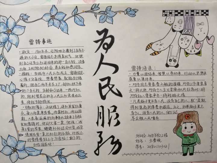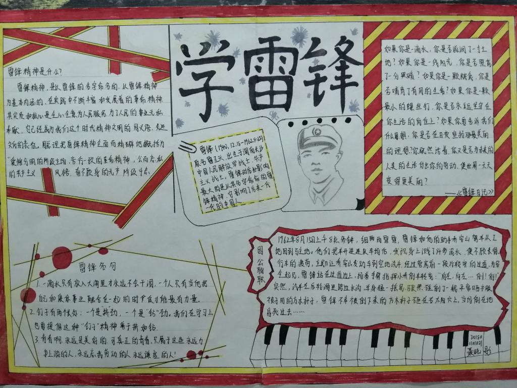 此次手抄报活动使同学们认真学习了雷锋精神,引导员工树立“无私奉献、勤劳勇敢、自强不息、乐于助人”的良好品质,培养“知行合一、德才兼备”的新时代青年。