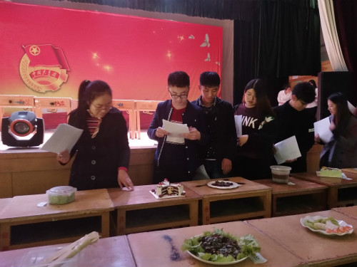 下午3点半,主持人上台宣读比赛规则和相关注意事项。随后比赛正式开始,每个队伍都有一分钟的美食展示时间,各组选手从制作流程,美食背景,美食文化等多方面对自己制作的美食进行集中讲解。糖醋鸡心,寿司,煎饼卷大葱等一系列各具特色的美食不仅吸引了公司师生,也吸引了兄弟院系的同学们前来围观品尝。最后由太阳成集团tyc9728团委老师和员工会主席团共同参与评审。