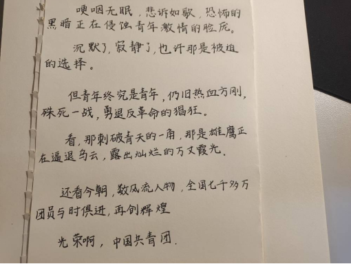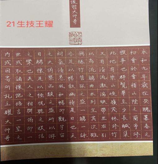 同学们用心书写每一笔每一画,书法字体规范、美观、匀称,于一横一竖中展示着自己的书法水平,于一笔一画中表现着书法的独特魅力,于水墨中书写着华夏文化情怀,每一幅作品都展示了其灵动风采。活动结束后,同学们纷纷表示此次书法大赛让他们对书法有了更深的认识,他们定会好好磨砺,学习优秀传统文化,争做合格接班人。