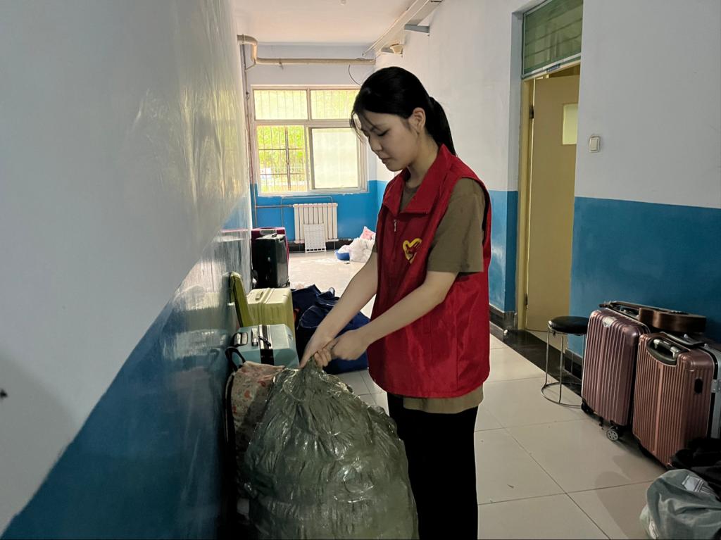 活动开始前,员工党员以最佳的精神面貌和认真负责的态度快速到达自己的岗位,他们或帮助毕业生们整理物品、或搬运行李,上下奔波、不辞辛劳,用自己的“爱心”温暖着即将踏上人生新征程的毕业生。此外,他们还协助毕业生们快捷、有序地办理离校手续,与毕业生们一同打扫寝室卫生、开窗通风透气、整理归置物品、清扫垃圾、杀菌消毒,在为毕业生提供周到服务的同时,也减轻了公寓楼管理员的工作量。